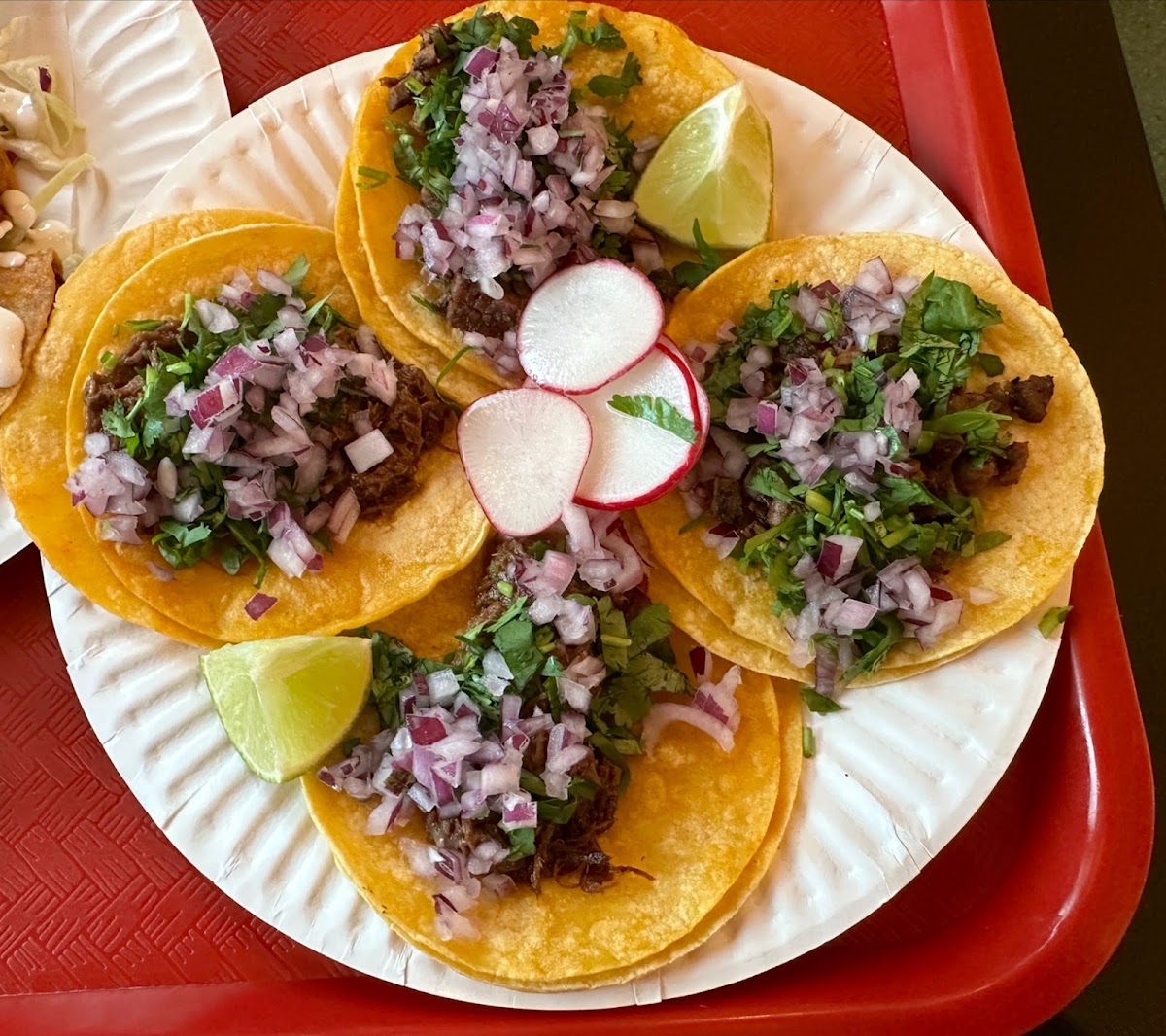 The street tacos were great flavorful tortillas soft meat not chewy. The special arachera though for its price i dont recommend i had a harder time chewing that taco down for the price i would want it to be tender and easy to chew. Flavors were great a bit salty but i wouldnt be shy to get it again if the meat was tender. The shrimp taco was worth trying definitely was a favorite just pricey but definitely good with a balanced flavor & the shrimp was cooked perfectly not rubbery at all. The salsas were also good. Red maybe has more spice but very mild. Green is more lime flavored also mild both are delicious. Chef special tacos which was the shrimp and arachera 9$ Street tacos 3$ I recommend the street tacos cant go wrong with those.