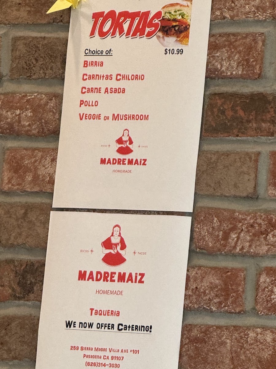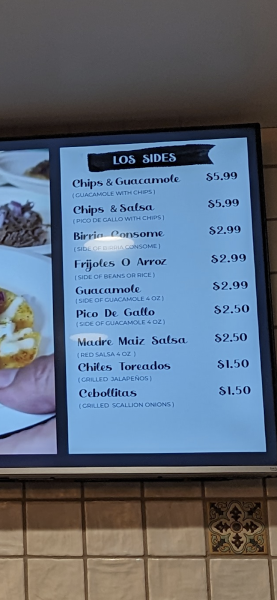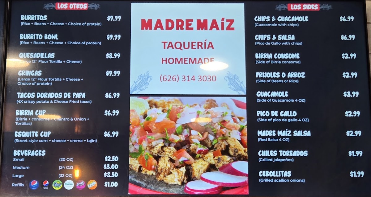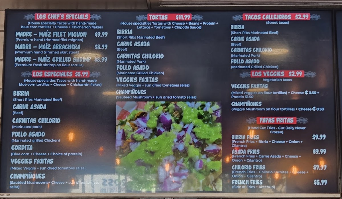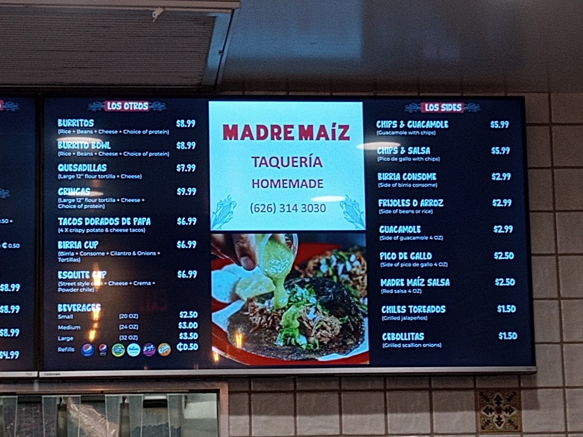 Madre Maiz Taqueria Menu